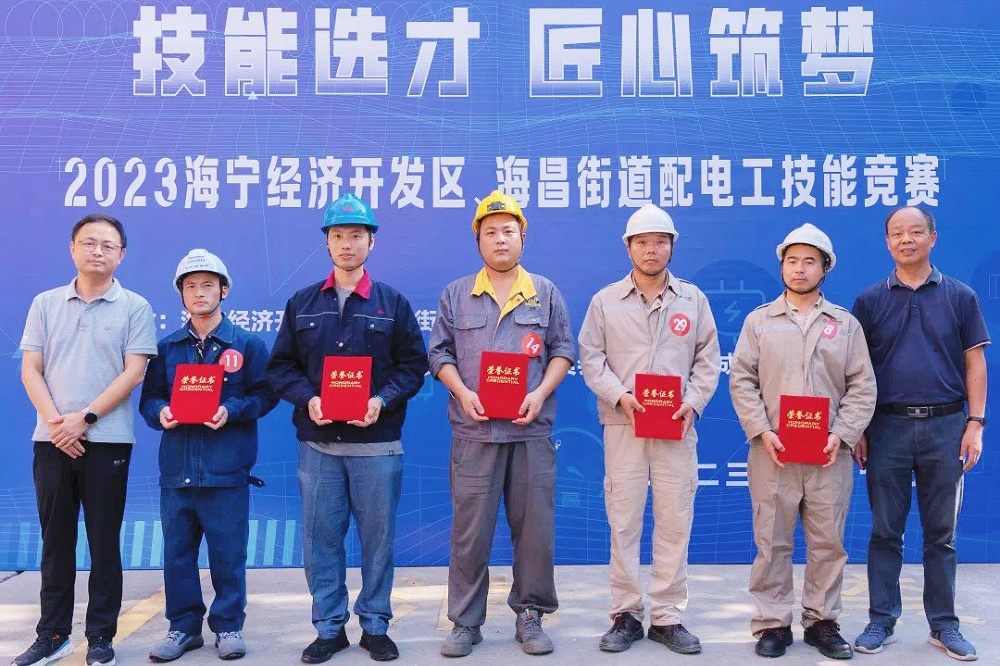 近日,海寧經濟開發區、海昌街道總工會舉辦了“技能選才 匠心筑夢”配電工技能競賽,競賽采取理論考試和技能實操考核相結合的方式進行,來自區街29家企業的41名高手同場競技。芯能科技員工在此次比賽中發揚工匠精神,展現出高超的專業技能水平和奮勇爭先的精神風貌,員工張金鏈、李東慧分別榮獲二等獎、三等獎的佳績。